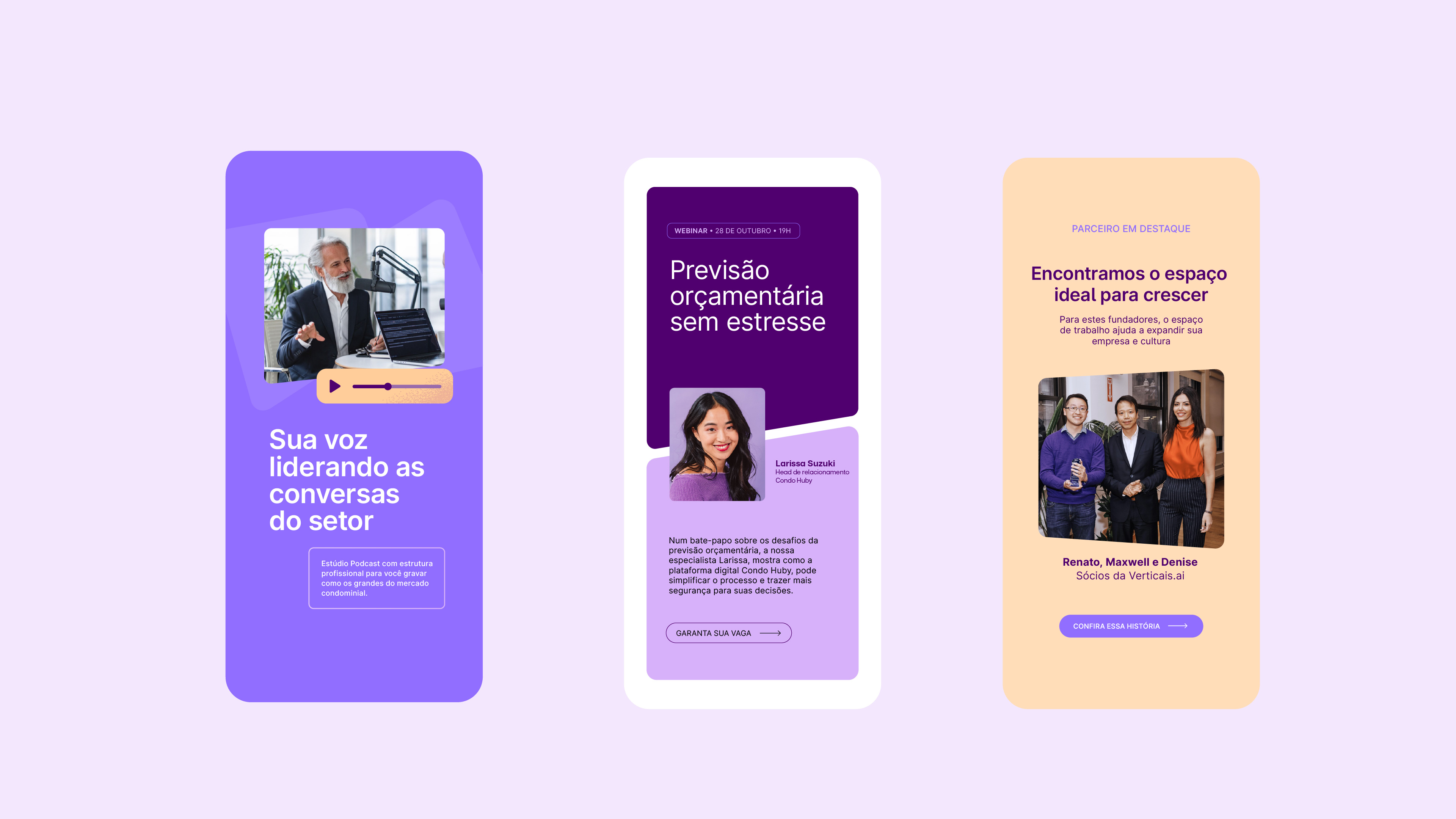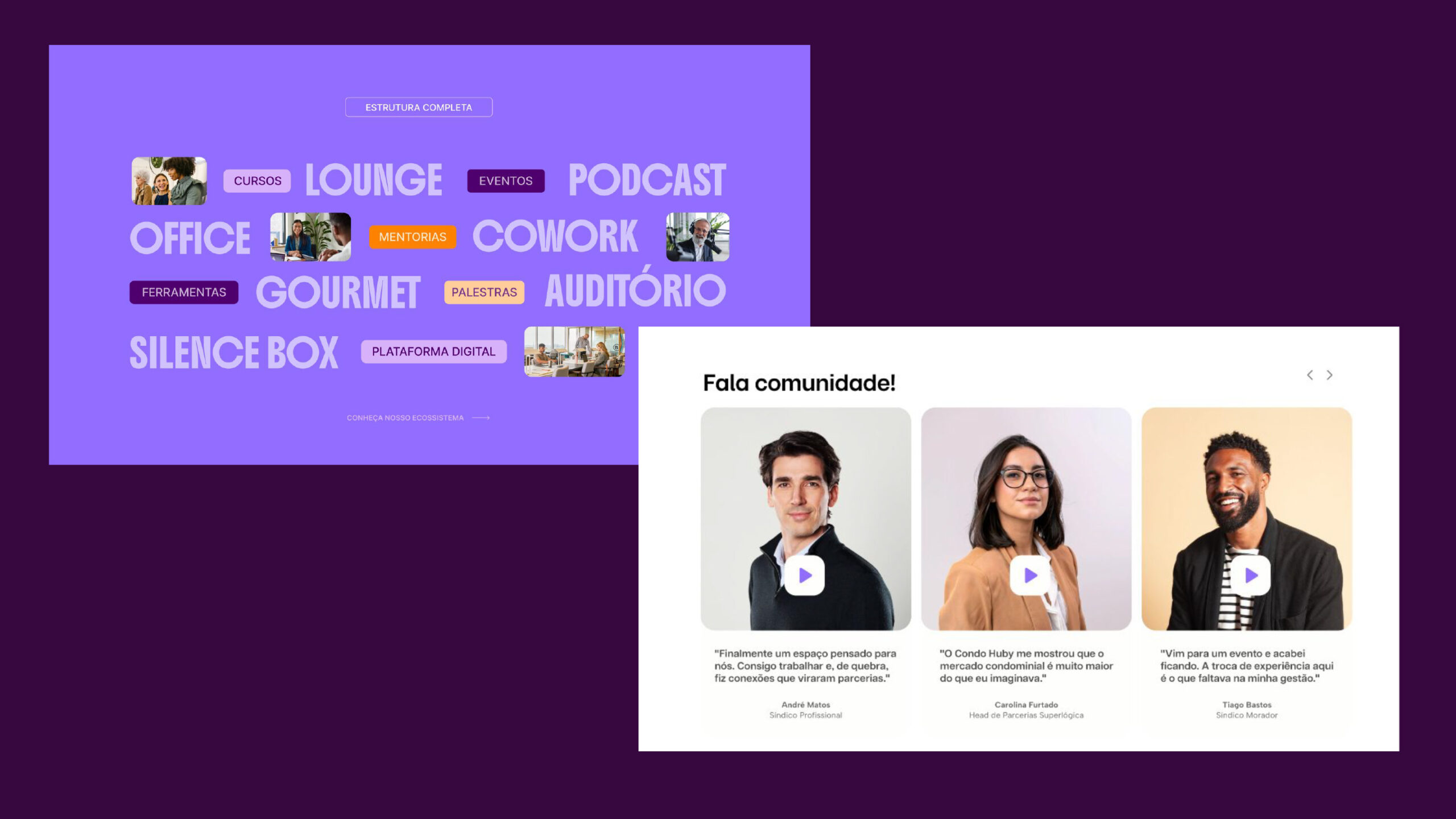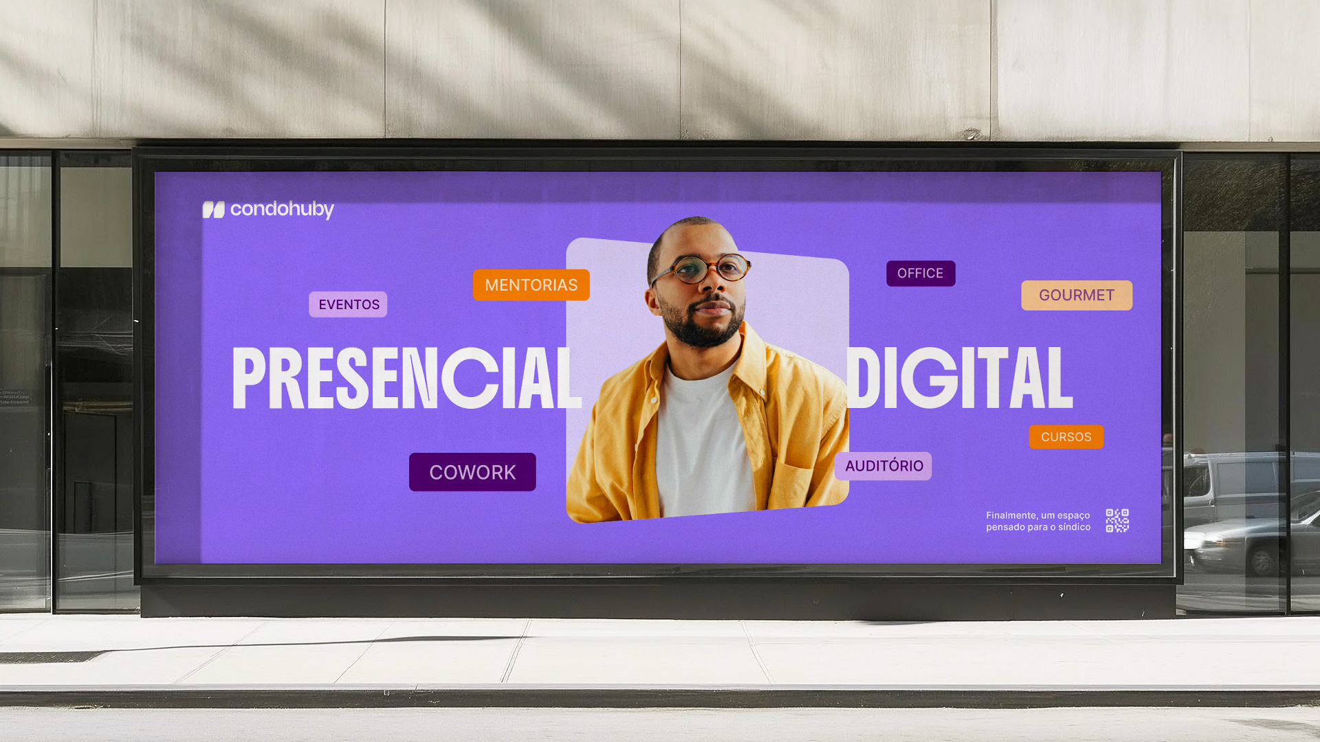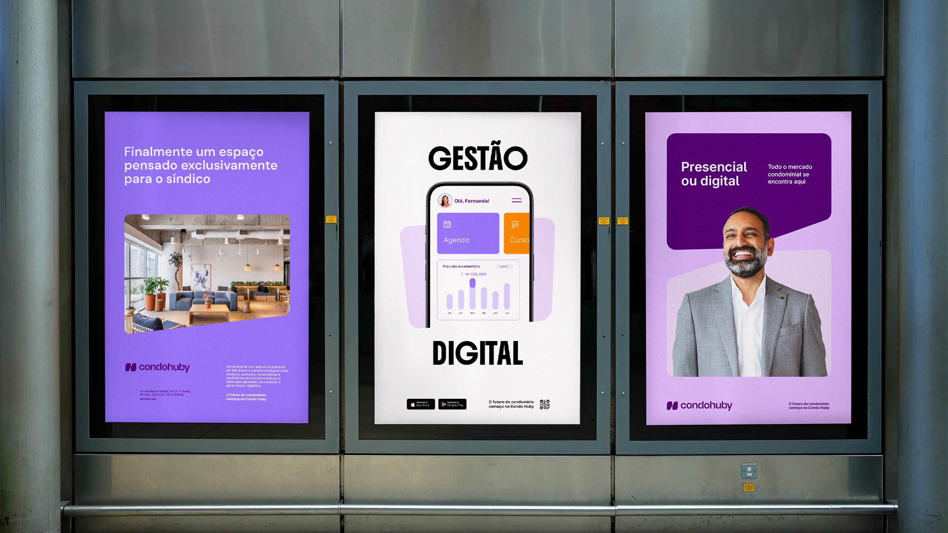 Chegou o momento de ver a nossa identidade ganhar vida. Nesta seção, reunimos aplicações reais que demonstram como todas as diretrizes técnicas apresentadas ao longo do manual se conectam. Observe como a harmonia entre marca, cores, tipografia e imagens constrói uma narrativa visual única, garantindo que o Condohuby se comunique com consistência, clareza e impacto em todos os pontos de contato.