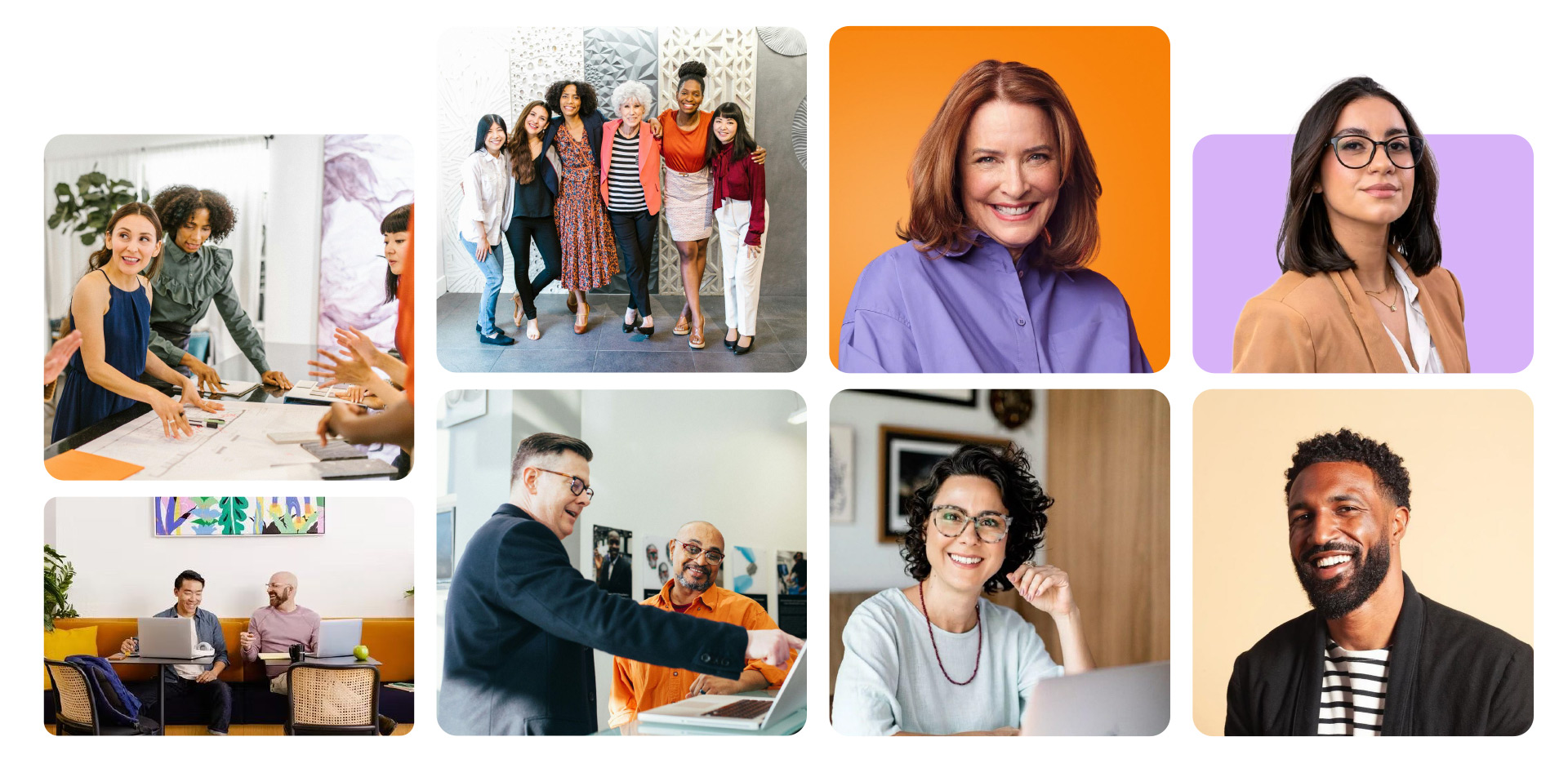 Sempre que possível utilize fotos de pessoas reais que fazem parte da nossa comunidade. As fotos devem mostram momentos de interação com naturalidade mostrando o nosso espaço, sempre privilegiando a iluminação natural e cores que conversem com a paleta de cores da nossa identidade. Para destacar pessoas, as fotos podem ser recortadas e aplicadas sobre fundos com variações de cores da nossa paleta institucional.