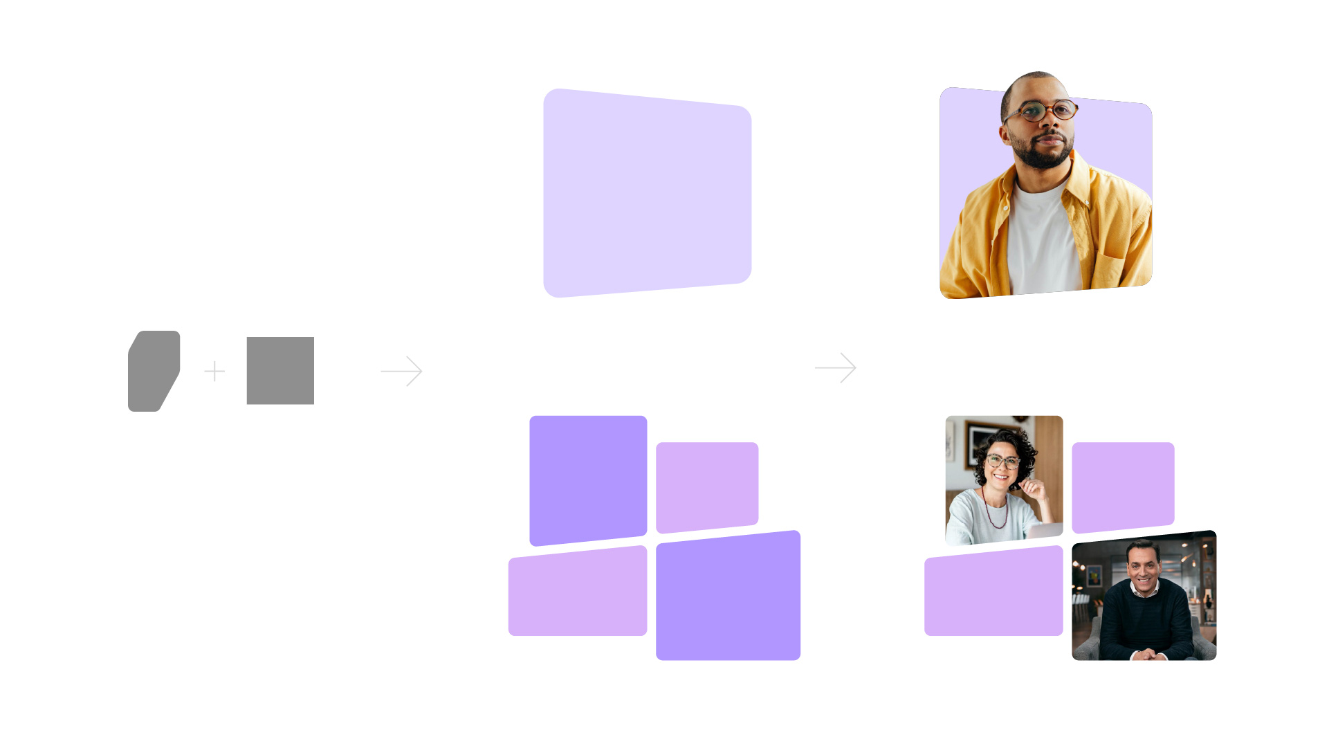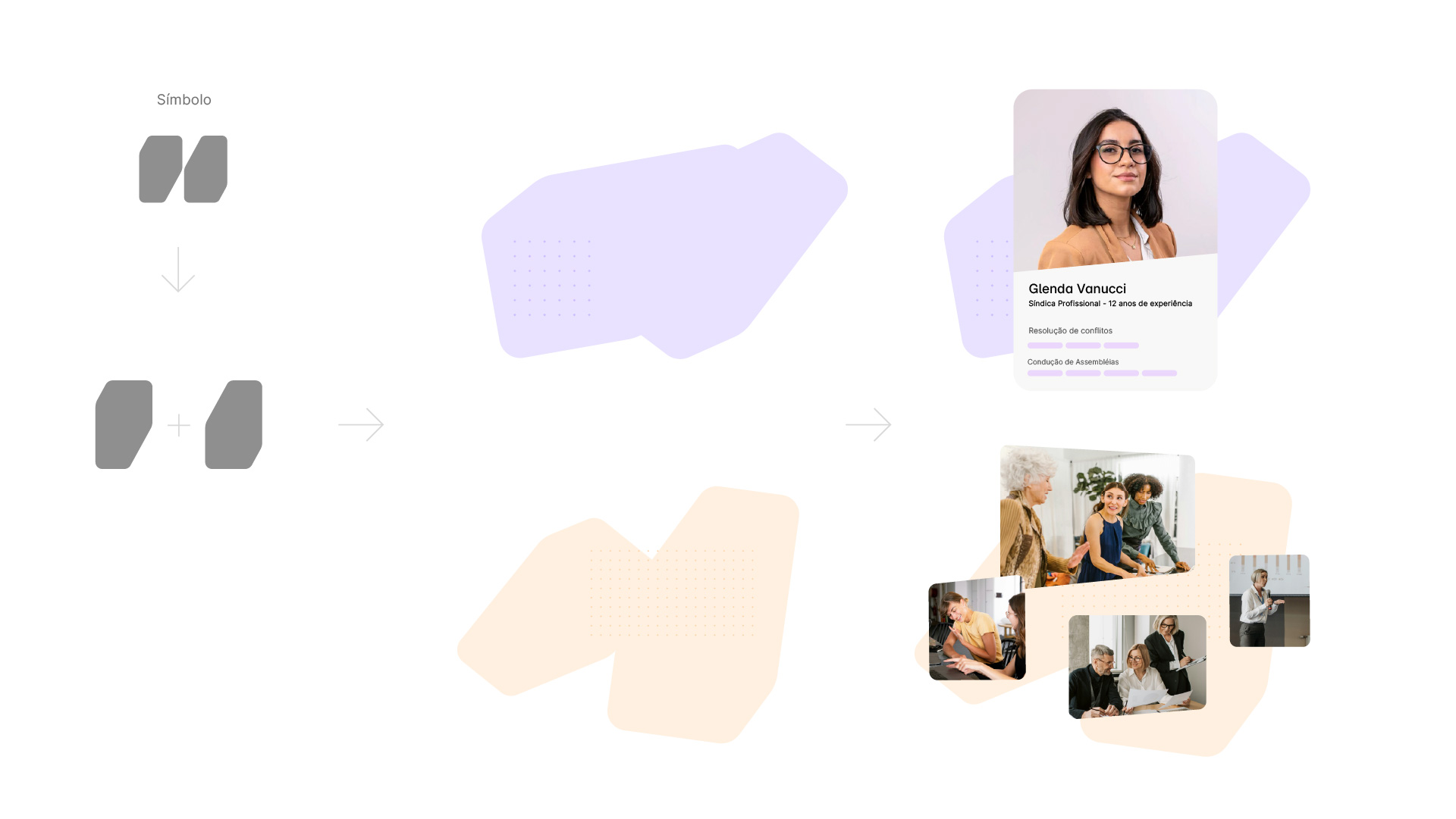 Nesse caso, unimos um elemento do símbolo com um quadrado para criar o estilo visual das molduras das imagens. A ideia é que as fotos apresentem um estilo mais leve e orgânico, além de trazer dinamismo para a identidade.