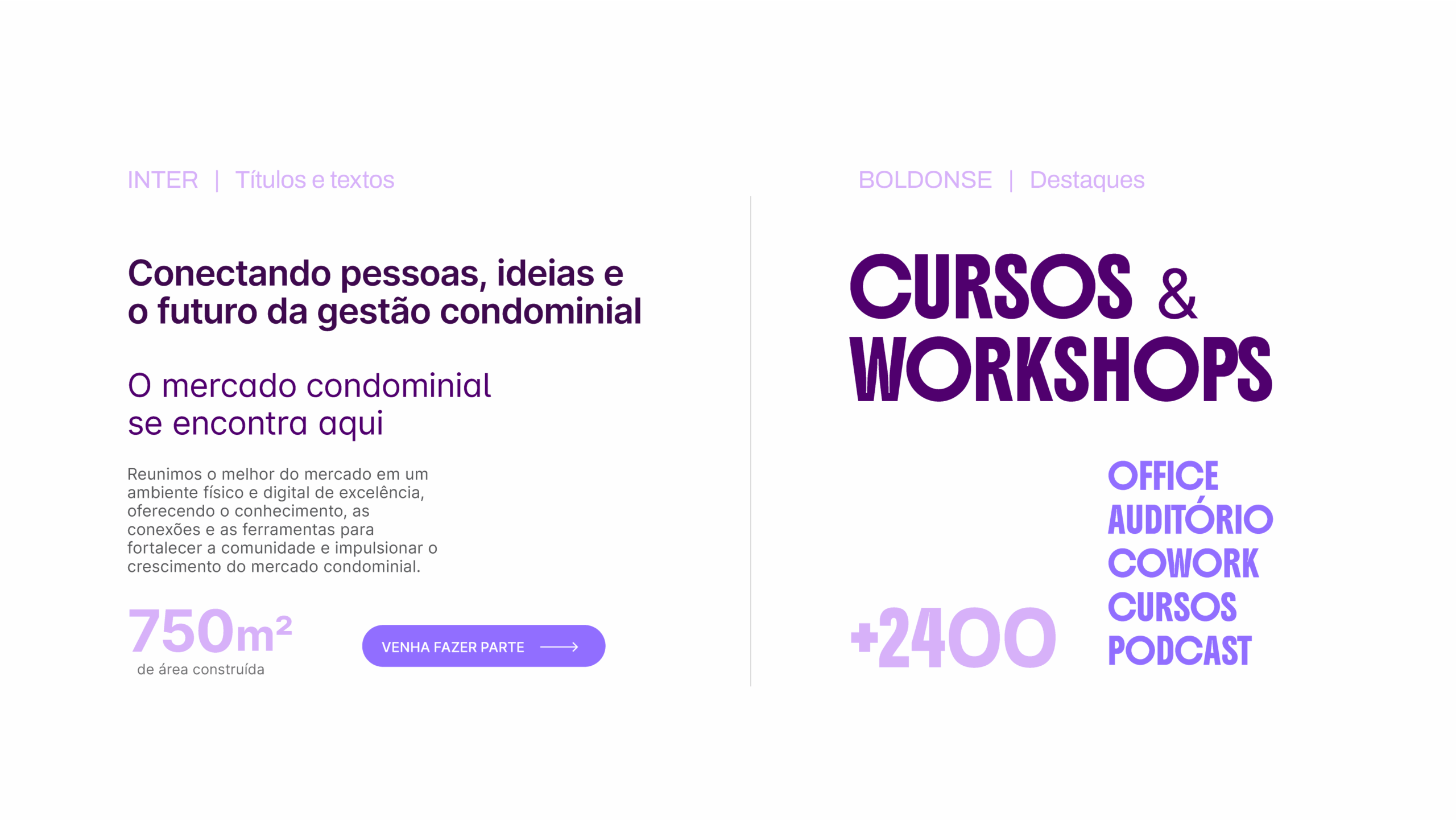 A identidade visual do condohuby é composta pela combinação de 2 tipografias: a Inter e a Boldonse, ambas disponíveis para download no site do Google fonts.